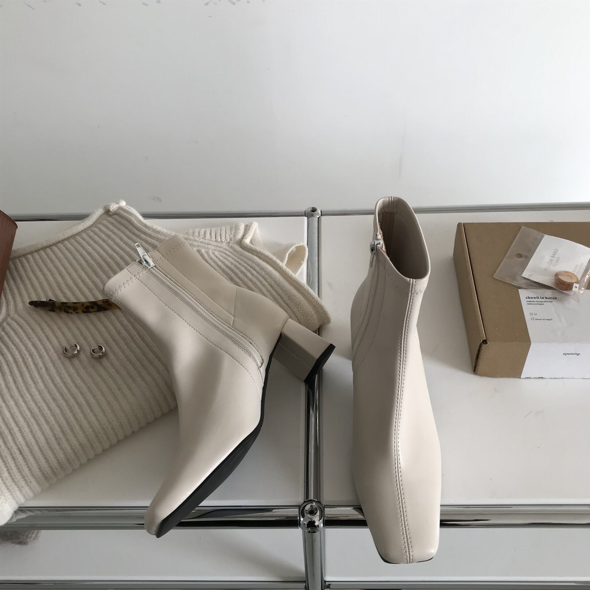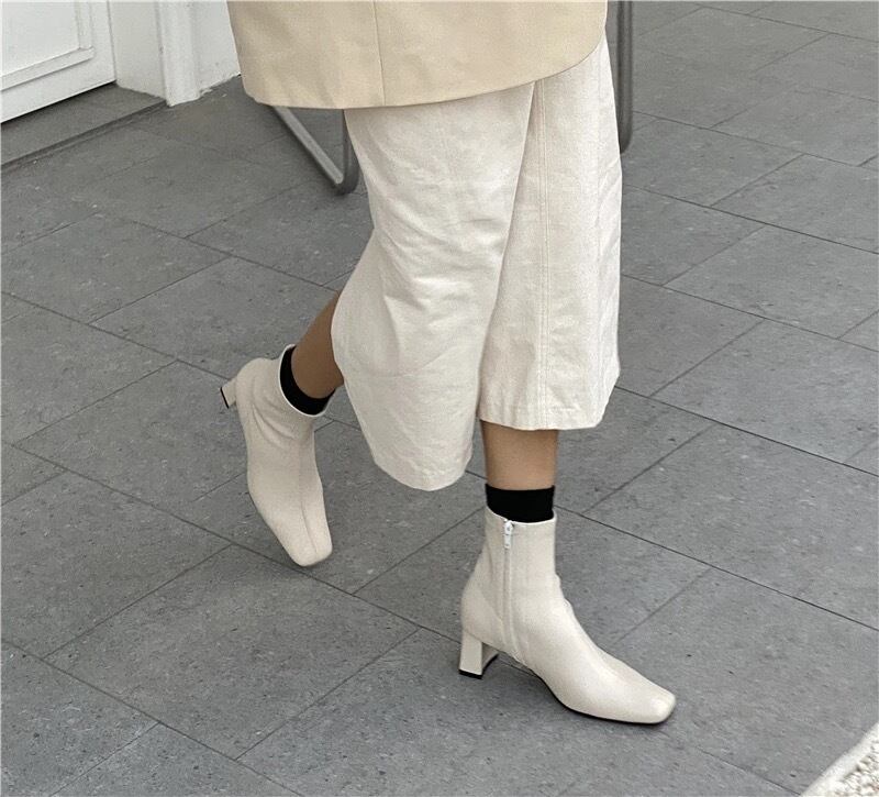 Color / ivory Size / S (23.0〜23.5) M(23.5〜24.0) L(24.0〜24.5) ヒール 6 甲幅 8 長さ(ヒールなし) 15 *測る位置により若干の誤差が生じる場合がございます。 去年に続き、人気のあるスクエアブーツ。 挑戦していただきやすい綺麗めな形となっており、ヒールも太く、疲れにくいので、白ブーツをお求めの方には是非ゲットしていただきたいアイテム。