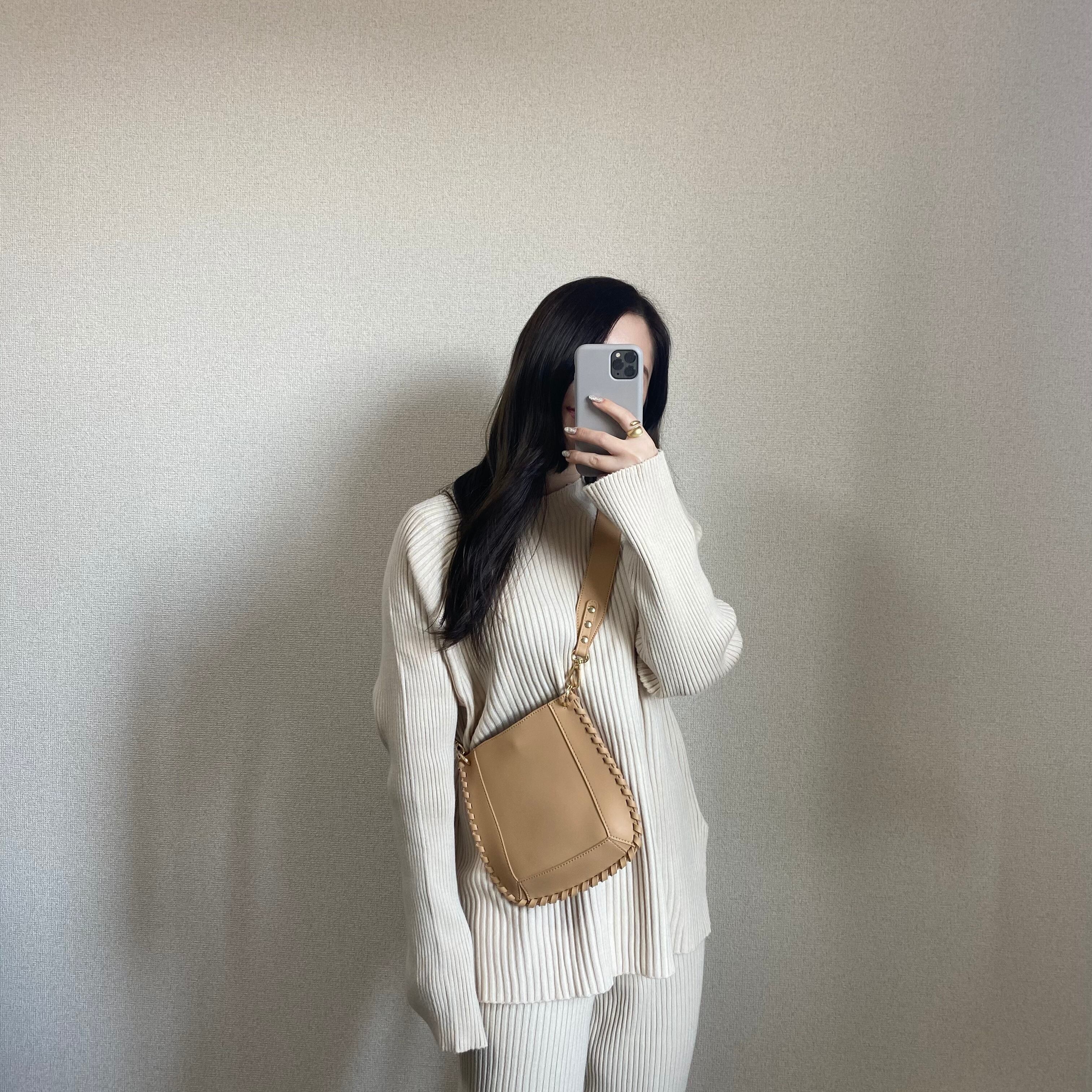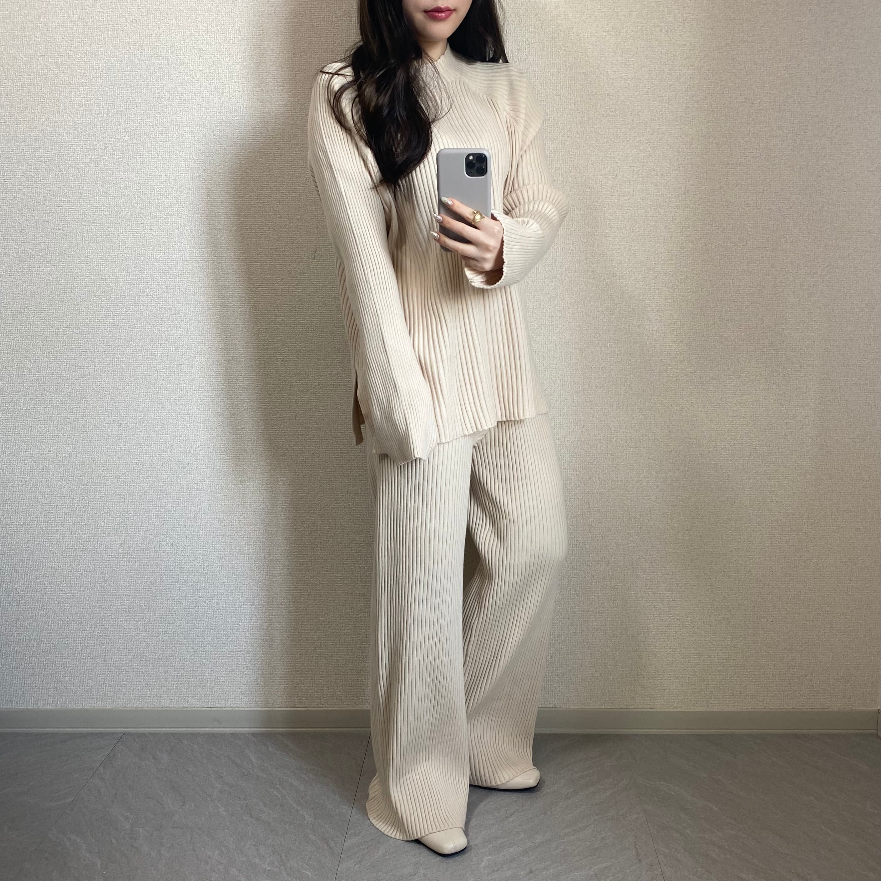 Color / ivory Size / free [tops] 着丈 63 バスト 57 袖丈 43 70 [pants] ウエスト 67 ヒップ 86 股上 33 股下 66 *平置き寸法のため若干の誤差があります。 モデル身長 148cm 着用item ◼︎スクエアショートブーツブーツ ◼︎ lace up shoulder bag アイボリーカラーのニットセットアップは ゆったりとしたシルエットでお出かけにも リラックスしたいおうち時間でも、 つい手を伸ばしたくなるアイテム。