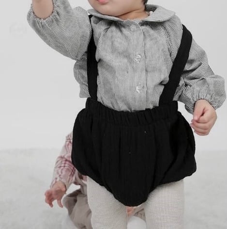 Color / black Size / one size S (〜80) ウエスト 20 着丈 23.5 肩紐 32 *平置き寸法のため若干の誤差があります。 デリケートなお子様の肌に優しい ガーゼ素材のサロペットブルマ。 たくさん汗をかいても通気性が良く、 タイツやレギンスを合わせてオールシーズンお好きなコーディネートを楽しんでいただけます。