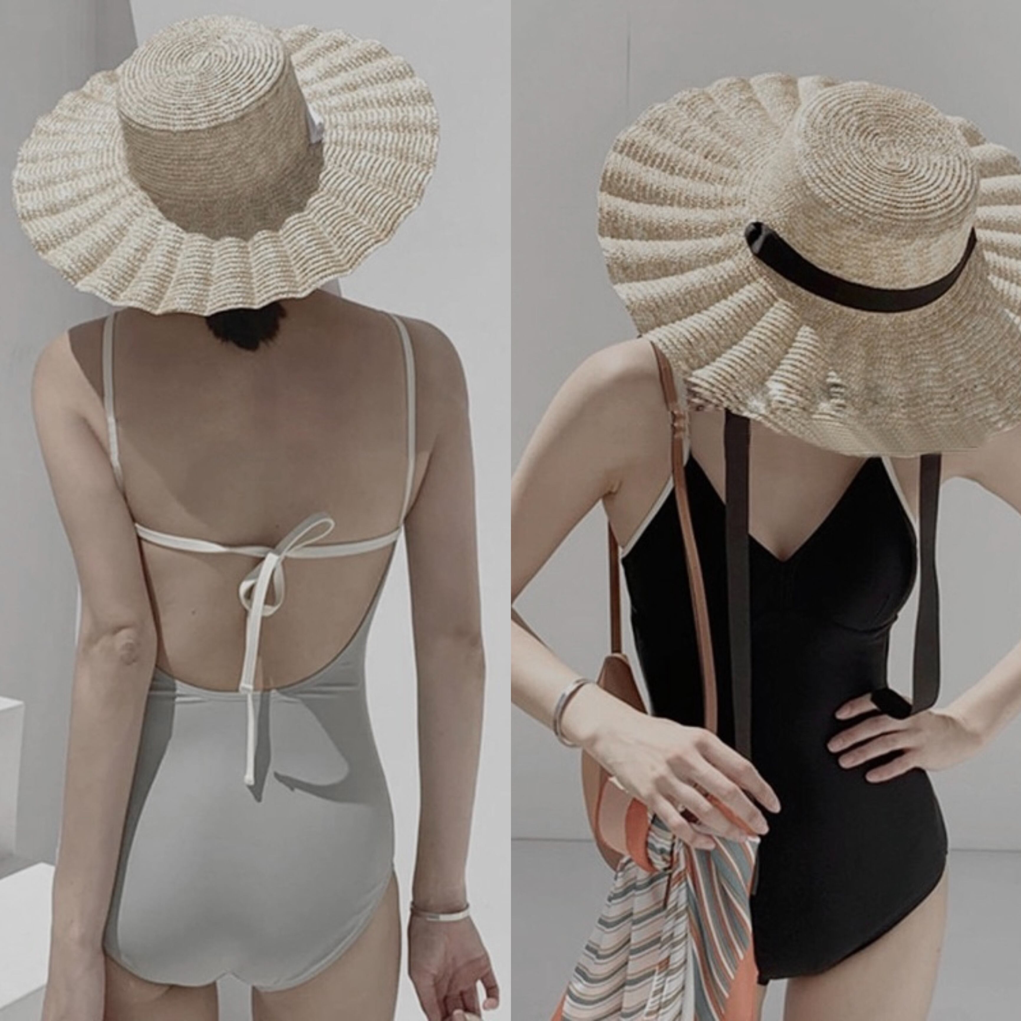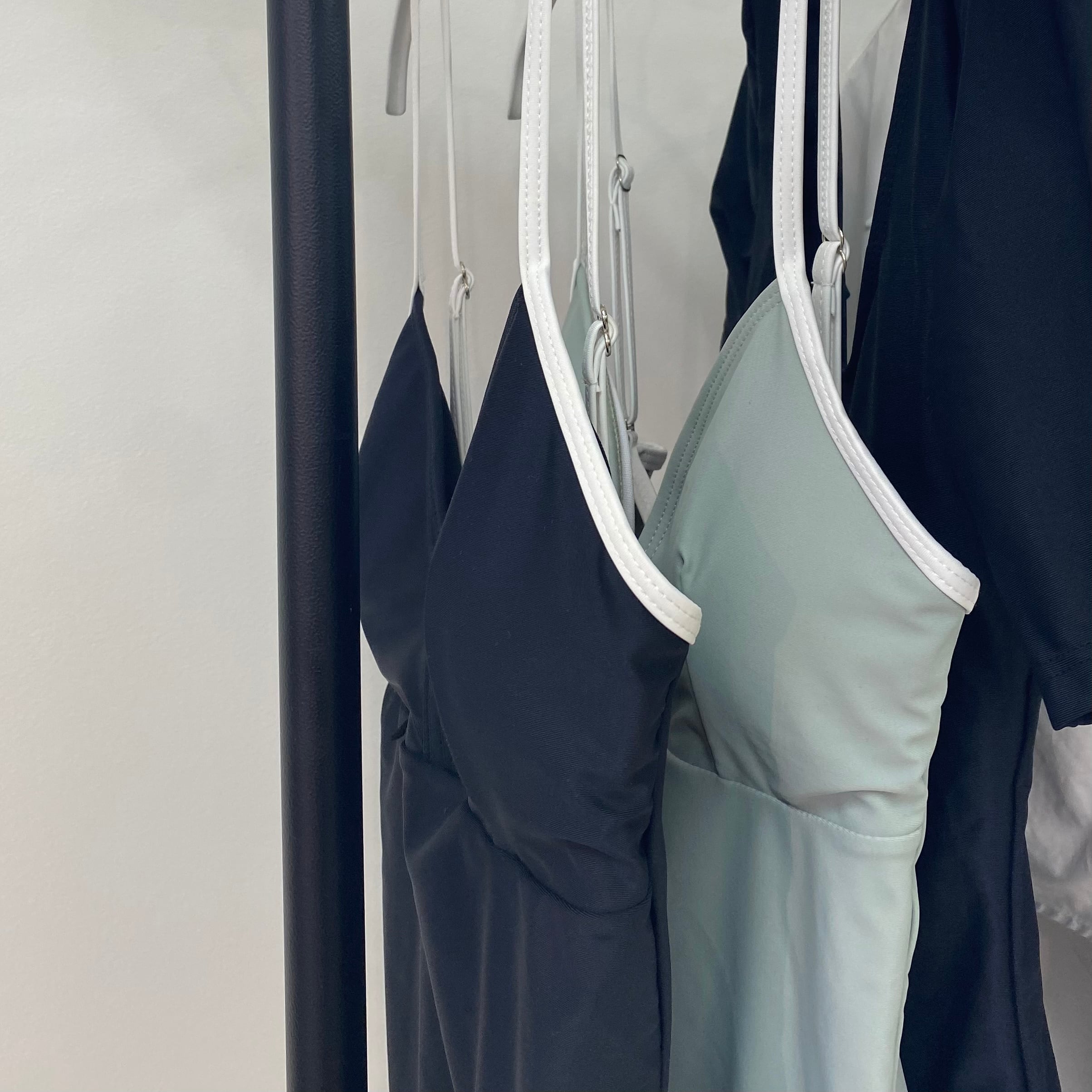Color / black , mint Size / free 着丈 70 バスト 29 カップ(縦/横) 12/12 ウエスト 30 ヒップ 34 わたり幅 21 肩紐 Max 26 *肩紐調節可能 *平置き寸法のため若干の誤差があります。 後が紐で結べるバックオープン水着。 blackと色味のキレイなmintをご用意致しました。