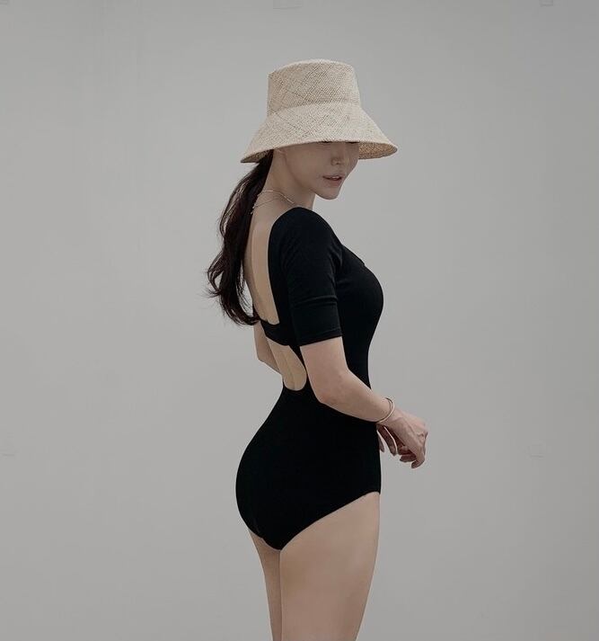 Color / black Size / free 着丈 65 バスト 29 カップ(縦/横) 12/12 ウエスト 29 ヒップ 32 わたり幅 21 *平置き寸法のため若干の誤差があります。 デザイン性のあるバックオープン水着。 使いやすいblackをご用意致しました。