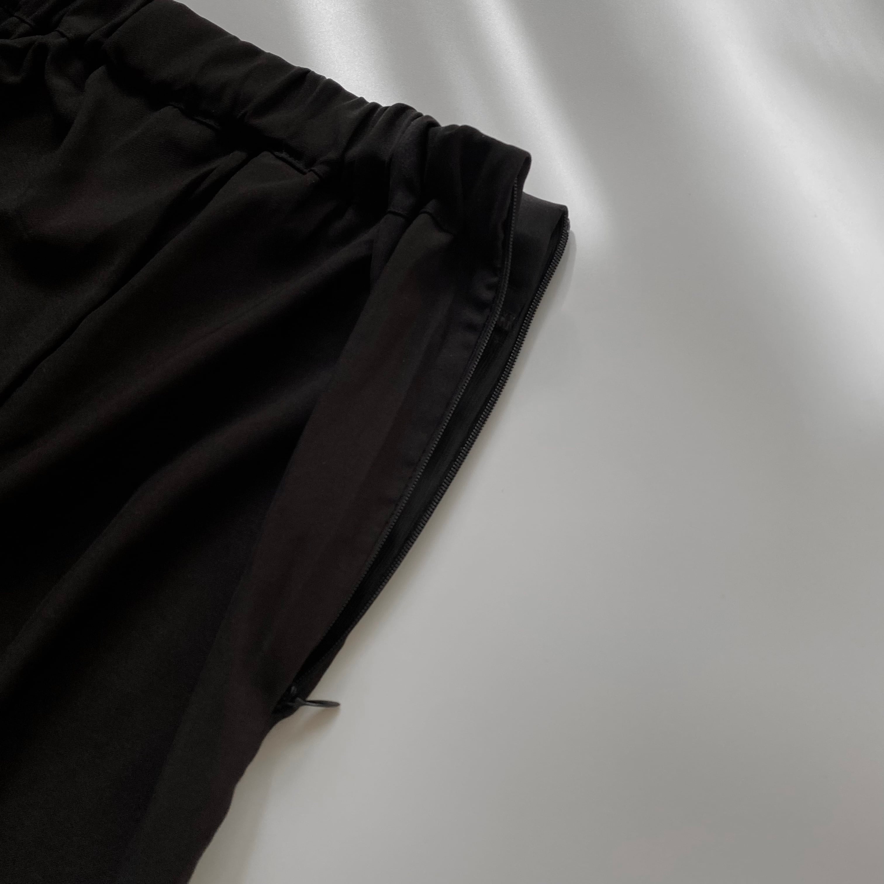 トップスの背中、ボトムスのサイドにはファスナーも付いております。