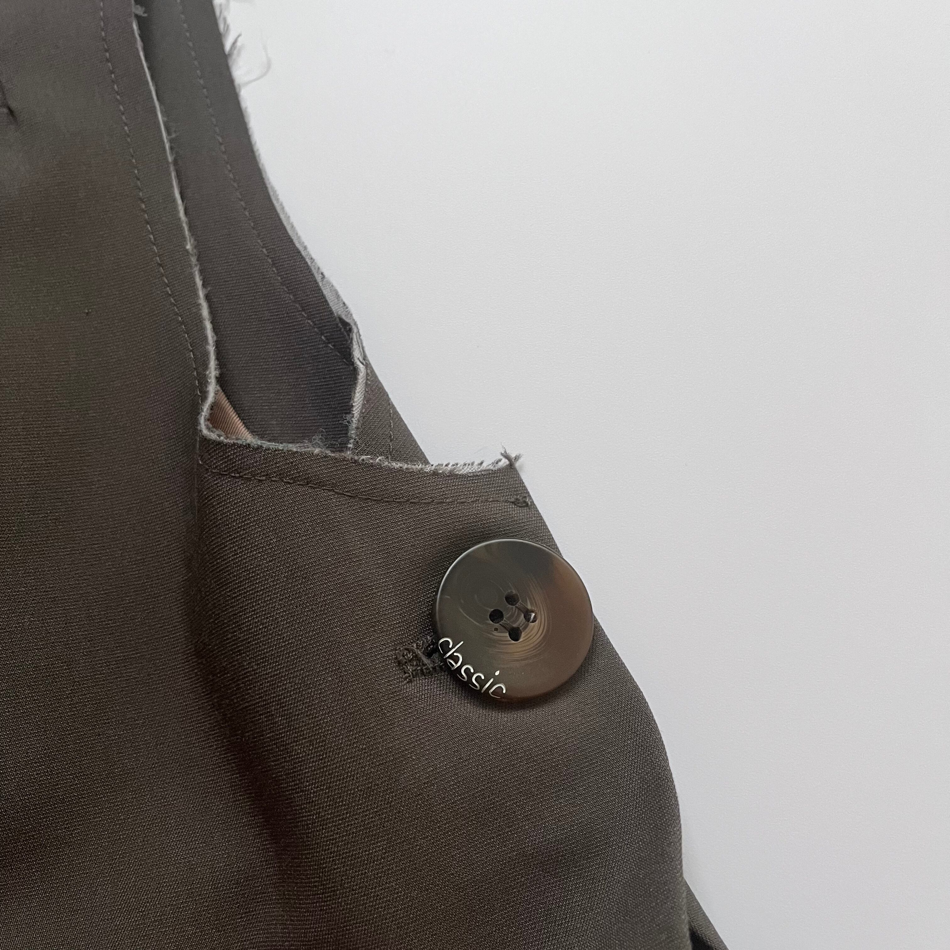 ベストのサイドと肩周りは切れっぱなしデザイン。