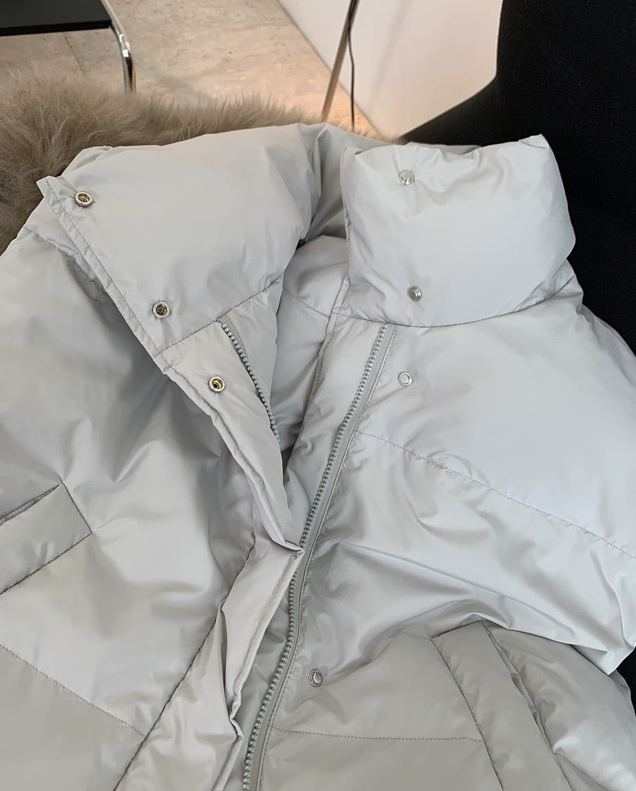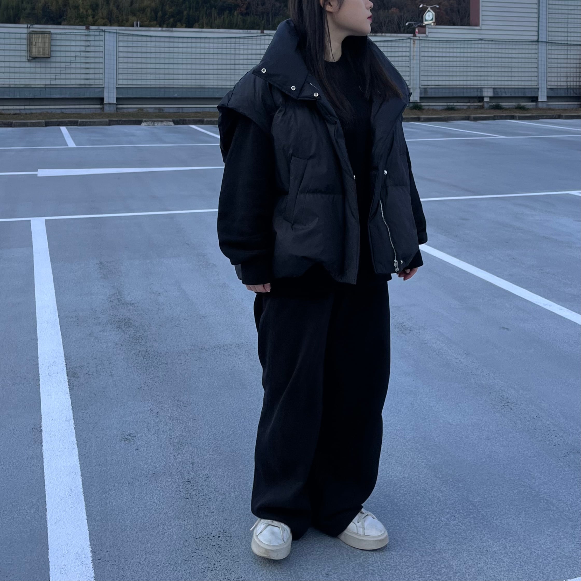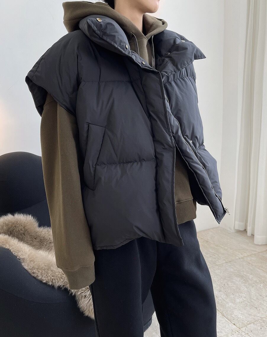 Color / black Size / free 着丈 65 身幅 71 肩幅 70 *平置き寸法のため若干の誤差があります。 大人気だったwhite grayが完売してしまいましたが、 数量限定で万能カラーのblackが登場。 ※完売後の再販売はございませんのでご注意ください。 長さのあるボリュームネック、 肩部分は落ち感があり ビックサイズでルーズなシルエットで抜け感を出してくれるお洒落なダウンベスト。