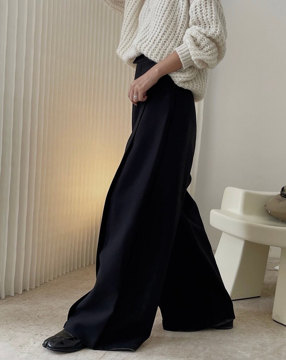 Color / black Size / free 総丈 106 ウエスト 32 ヒップ 46 股上 33 股下 72 わたり幅 31 裾幅 33 *平置き寸法のため若干の誤差があります。 スーパーワイドなシルエットでコーデをクールにかっこよくまとめてくれます。 ※バックポケットはフェイクとなります。