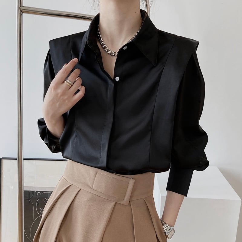 Color / black , white Size / free 着丈 70 身幅 42 肩幅 34 袖丈 60 *平置き寸法のため若干の誤差があります。 オフィスやお出かけにはもちろん、 セレモニーでもお使いいただける 万能サテンシャツ。 ニットベストでレイヤードコーデにも◎